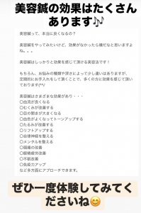 通電鍼灸の後は大変結構が良く美容液の通りもすこぶる良いです。